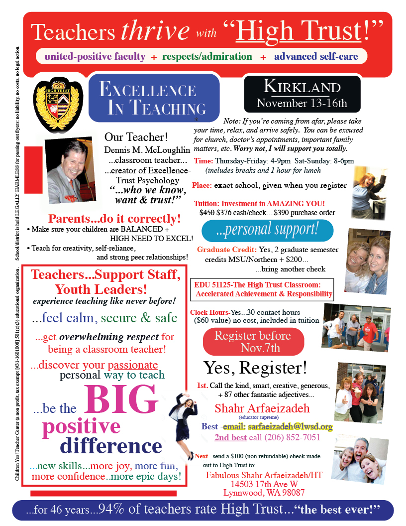 their life ....real, caring, and strong!5. Celebrate with other High Trust teachers, YOU BELONG!